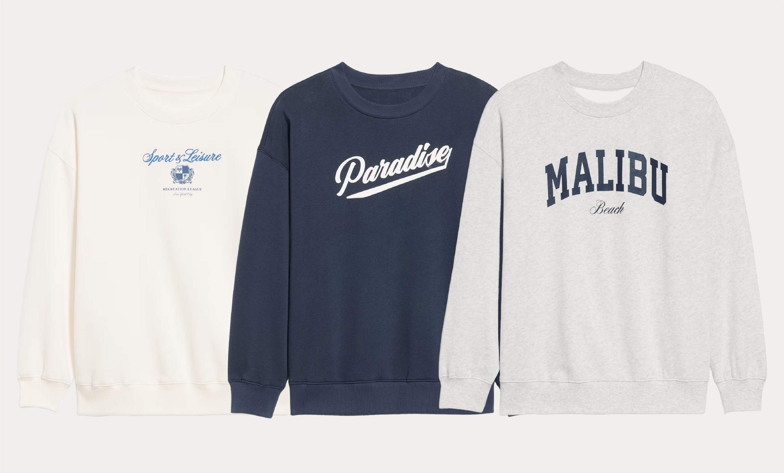 Art direction, concept development, and graphic design for Old Navy Women’s Fleece and Knit apparel graphics. The designs were created to align with seasonal shop themes & enhance storytelling within the in-store experience. Designers: Alyson Zimmerman, Jess Nam, Kristen Long, & Chris McNally.